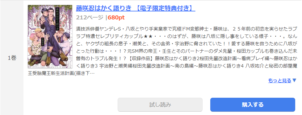 「藤咲忍はかく語りき」1冊680円なのが、もらえるポイントで1冊が500円引きに。