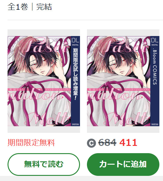 「ファシネーション・メルト」1冊684円なのが、もらえるポイントで1冊が500円引きに。