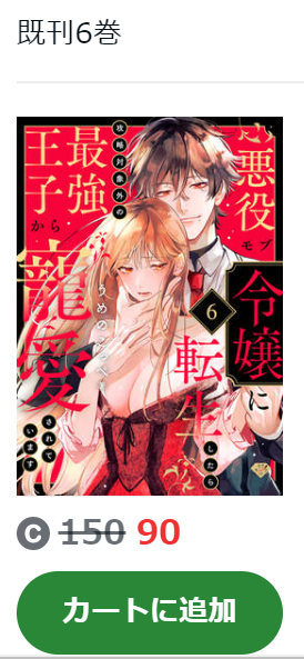 「悪役モブ令嬢に転生したら攻略対象外の最強王子から寵愛されています」1冊150円なのが、もらえるポイントで3冊が無料に。